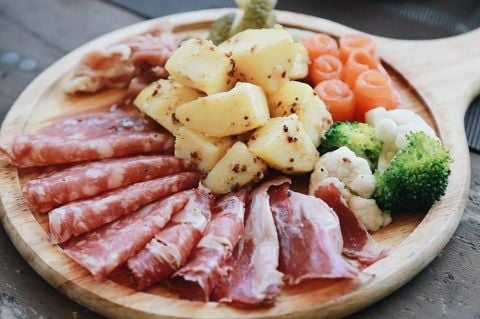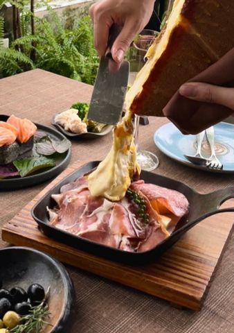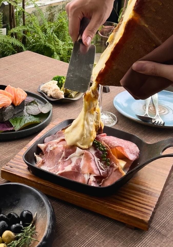 * Món đặc sắc: Bò bít tết Angus, Dẻ sườn bò Úc, Dẻ sườn lợn Iberico, Sườn cừu, Cá hồi áp chảo, Cá hồi xông khói, Lườn vịt, Gan ngỗng áp chảo, Phô mai Gouda, Phô mai Raclette, Nấm nướng, Khoai tây bỏ lò, Bánh đa chiên giòn, Bánh mì tỏi giòn, Sốt trái cây…