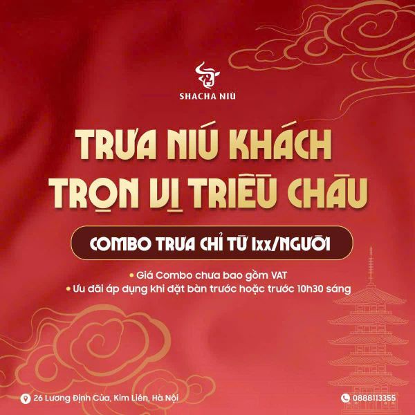 Tọa lạc tại địa chỉ số 26 Lương Định Của, thuộc phường Kim Liên, Hà Nội, Nhà hàng SHACHA NIÚ hiện lên như một điểm đến quen thuộc và đặc trưng là ẩm thực Trung Hoa giao thoa với ẩm thực Việt, đặc biệt là các món từ bò. Với vị trí đắc địa trên con phố sầm uất, nhà hàng dễ dàng thu hút đông đảo thực khách bởi sự tiện lợi và không gian ấm cúng. Bước chân vào SHACHA NIÚ, bạn sẽ cảm nhận được ngay mùi vị ấm nồng, hương thơm các vị lẩu đặc trưng Trung Hoa. Không gian được thiết kế tinh tế, với cách bài trí gọn gàng, sạch sẽ, tạo cảm giác thoải mái và thư thái. Hệ thống bàn ghế được sắp xếp hợp lý, phù hợp cho cả những bữa ăn gia đình, buổi hẹn hò lãng mạn hay những buổi liên hoan bạn bè, đồng nghiệp. Nhà hàng có nhiều khu vực bàn riêng tư phù hợp tiếp khách,.... Ánh sáng ấm áp và không gian mở tại đây mang đến một trải nghiệm ẩm thực thân thiện, gần gũi, là nơi lý tưởng để thưởng thức những món ăn ngon và tận hưởng khoảnh khắc trò chuyện vui vẻ cùng những người thân yêu.