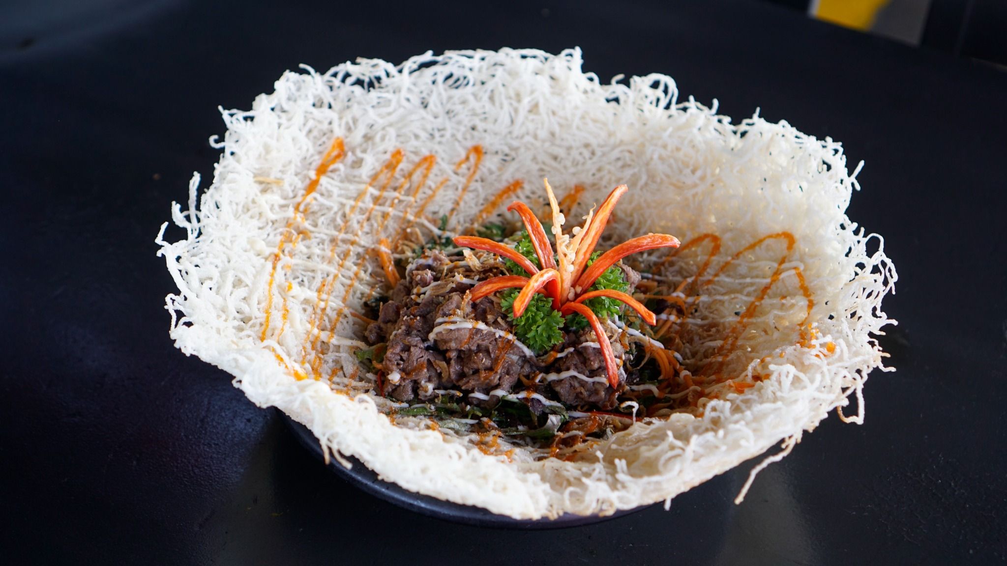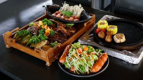 * Món ăn đặc sắc: Bò nướng đá, Sườn bò nướng sốt BBQ, Lưỡi vịt Sapo, Gà nổ muối nguyên con, Răng mực rang trứng muối, Sụn gà rang muối Thái, Tôm sốt wasabi,...