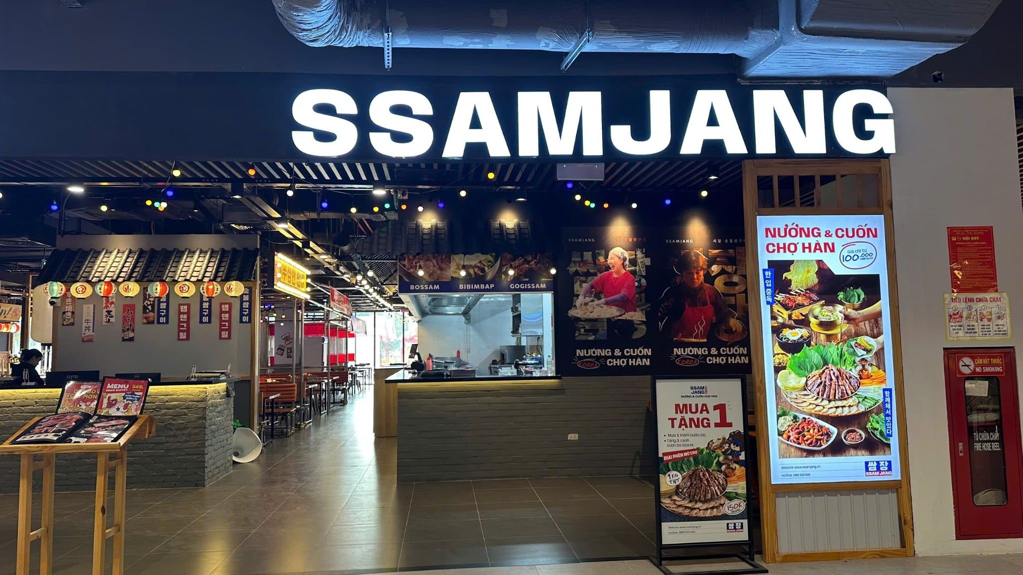 Tọa lạc ngay trong TTTM Go Thăng Long trên trục đường Trần Duy Hưng sầm uất, Ssamjang Nướng & Cuốn chợ Hàn mang đến cho thực khách một không gian ẩm thực vô cùng đặc biệt. Ssamjang là quán ăn Hàn Quốc hiện đại, lấy cảm hứng từ tinh thần sôi động, gần gũi của các khu chợ truyền thống. Thương hiệu mang đến trải nghiệm ẩm thực “nướng & cuốn chuẩn vị Hàn", với: Thịt nướng lửa than bùng vị, kết hợp cùng rau cuốn, bánh cuốn jeon mềm dẻo. Bữa ăn trọn vị, đầy đủ chất – ấm bụng – lành mạnh, phù hợp cho mọi đối tượng. Không gian thưởng thức thoải mái, dễ sẻ chia như đang cùng bạn bè dùng bữa giữa khu chợ Hàn đầy bản sắc. Ssamjang không chỉ phục vụ món ăn, mà còn tái hiện một trải nghiệm ẩm thực đậm tinh thần bản địa, sống động và dễ gần.