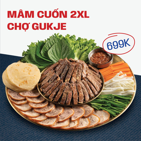 – Mâm 2XL chợ Gukje (699K): 1kg thịt nướng GOGISAM, thêm chân giò Jokbal, rau, bánh Jeon – hợp nhóm 4–5 người