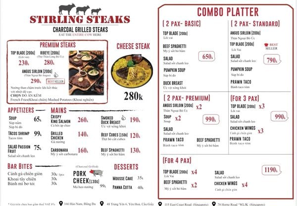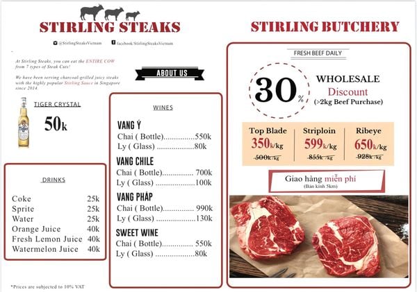 Stirling Steaks - 166 Hào Nam, Đống Đa, Hà Nội – Thiên Đường Steak Chuẩn Âu Giữa Lòng Thủ Đô