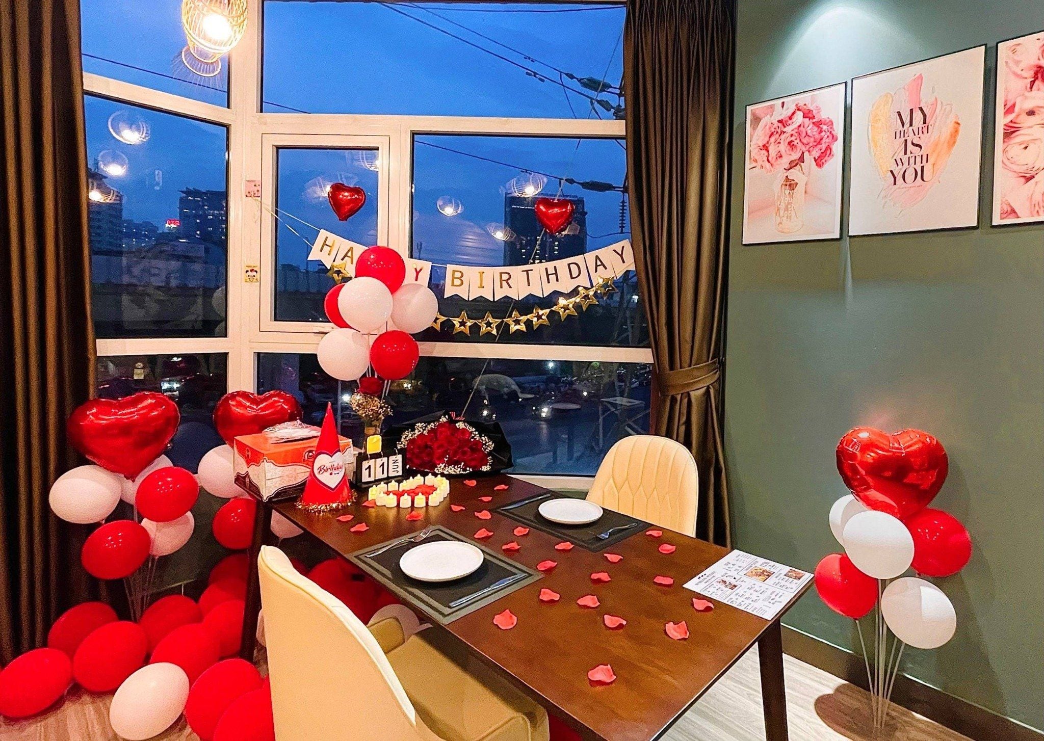 Miễn phí trang trí cho các dịp đặc biệt (Sinh nhật – Kỷ niệm – Hẹn hò – First date – Cầu hôn…) khi đặt bàn trước: