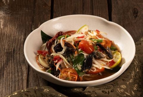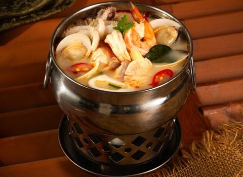 Thai Market Restaurant không chỉ đơn thuần là một nhà hàng, mà là nơi thực khách được khám phá đa dạng các món ăn chuẩn vị Thái Lan như Gỏi đu đủ tươi mát, Pad Thai nổi tiếng, Cơm chiên hải sản thơm ngon, Canh Tomyum chua cay, hay Gỏi miến Khaosan và Xương khủng long độc đáo. Canh Tom Yum - một niềm tự hào của ẩm thực Thái nổi bật với vị chua cay hài hòa, thanh béo từ nước cốt dừa, và hương thơm đậm đà của riềng, sả, lá chanh, cùng các gia vị Thái truyền thống khiến cho mỗi thực khách ấn tượng đến khó quên.