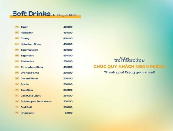 Menu chưa bao gồm VAT, Nhà hàng luôn thu hộ thuế VAT. Mức phí VAT là theo quy định.