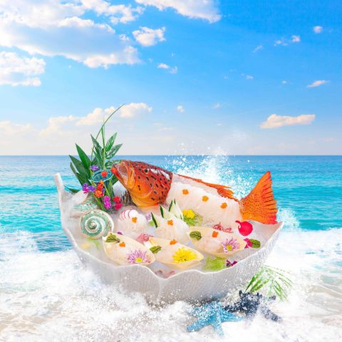 Thực đơn tại Thế Giới Hải Sản nổi bật với các món văn hoá thương hiệu như “Lộc biển phát tài” (Tôm hùm bông bỏ lò phô mai), “Thuận buồm xuôi gió” (Cá bơn vàng sashimi Hàn Quốc), “Báu vật đại dương” (Cua Kingcrab hấp rượu vang Pháp) hay Lẩu thuyền chài đậm đà hương vị biển. Bên cạnh đó, thực khách còn có cơ hội trải nghiệm menu hải sản thế giới độc đáo với các bộ sưu tập: Taste of China (Ốc hương xốt Tứ Xuyên, Bào ngư hấp nấm Vân Nam), Taste of Euro (Set Steak phố cảng Liverpool, Lời chào từ La Rochelle, Bí mật Sicilia), Taste of Europe (Bản Sonate mùa đông nước Pháp - cá tuyết xốt nấm, Điệu Valse đại dương - mì Ý thịt ghẹ, Báu vật biển khơi từ Brittany - Tôm hùm bông xốt Tastate). Mỗi món ăn là một hành trình ẩm thực đưa thực khách khám phá tinh hoa biển cả từ khắp nơi trên thế giới.
