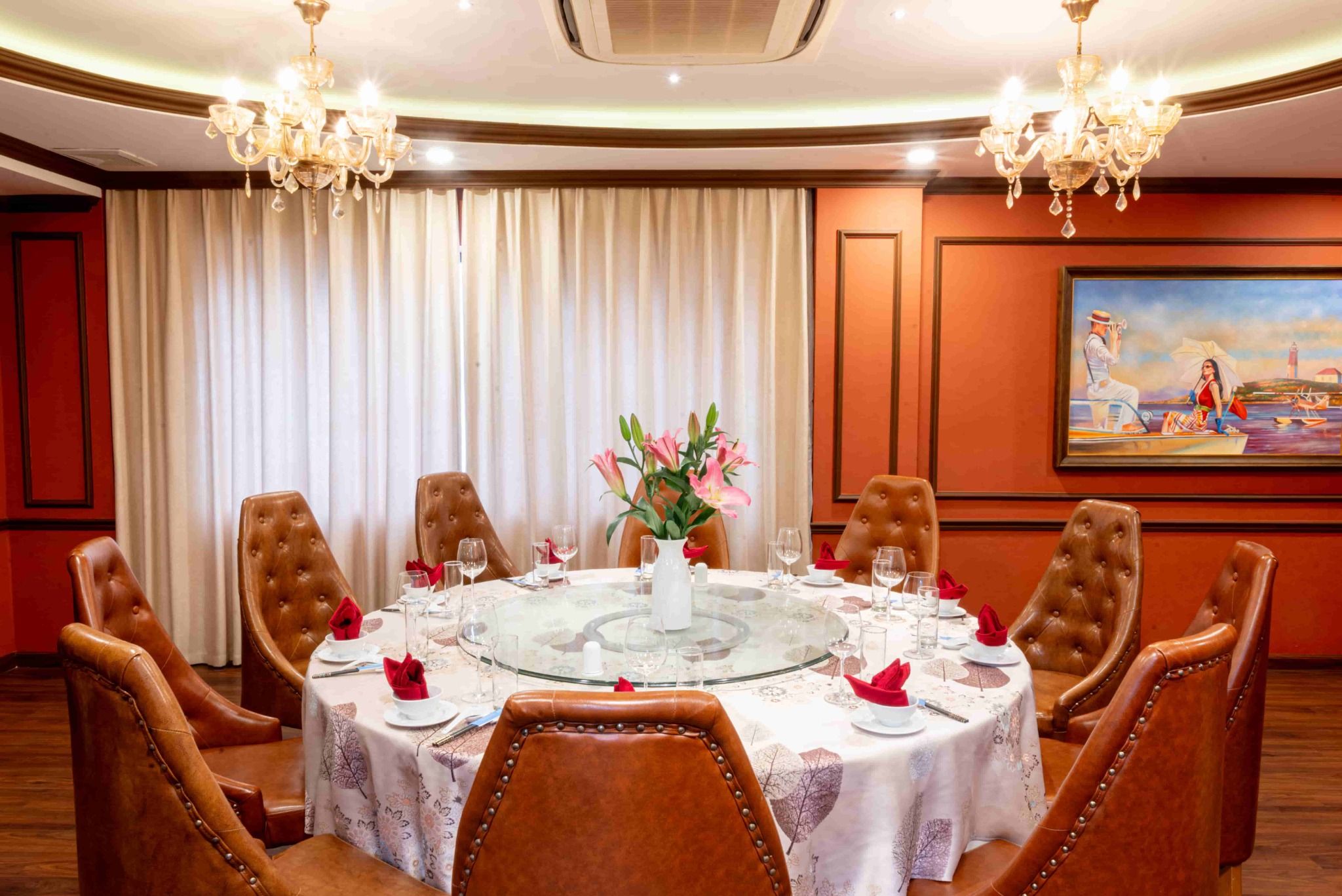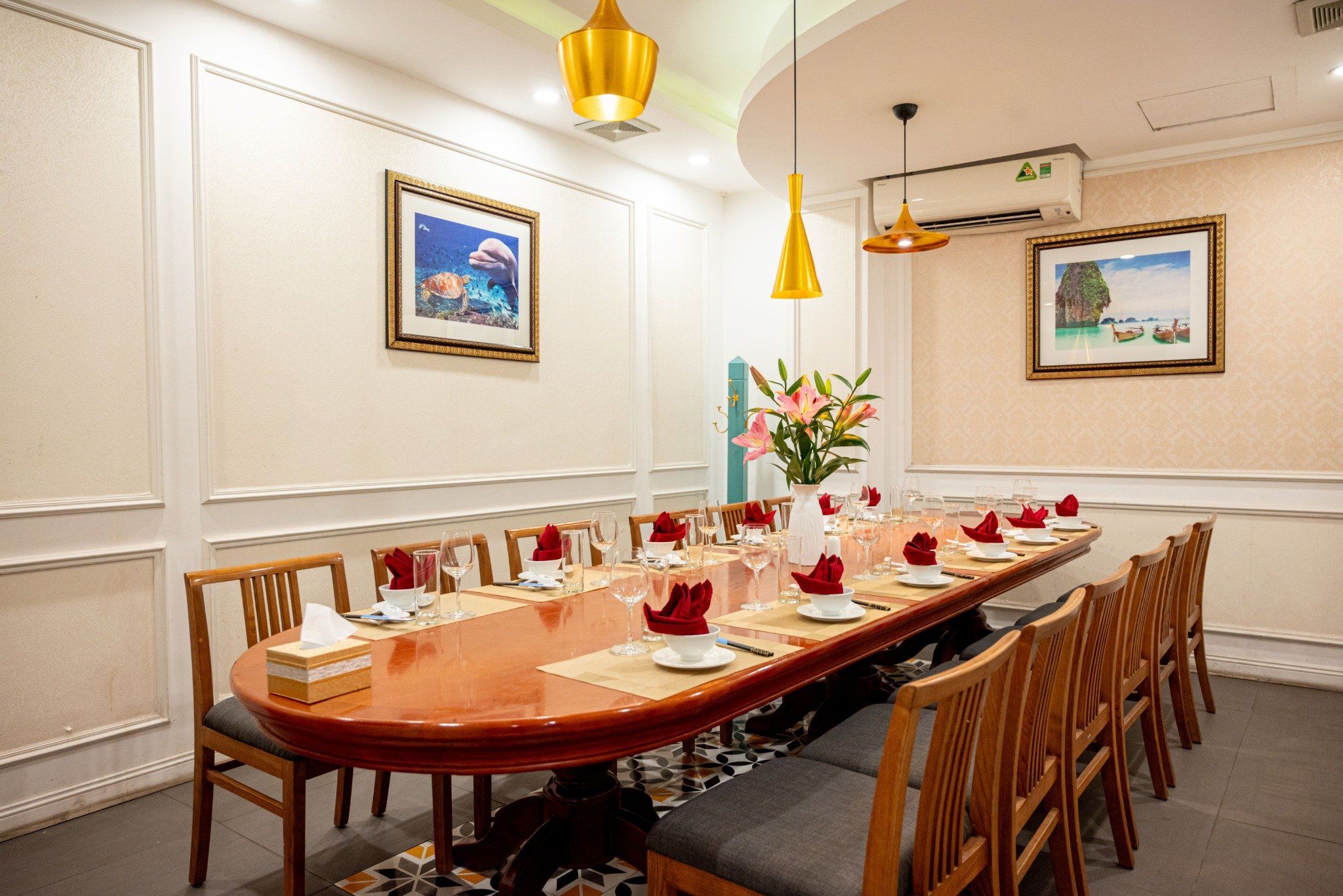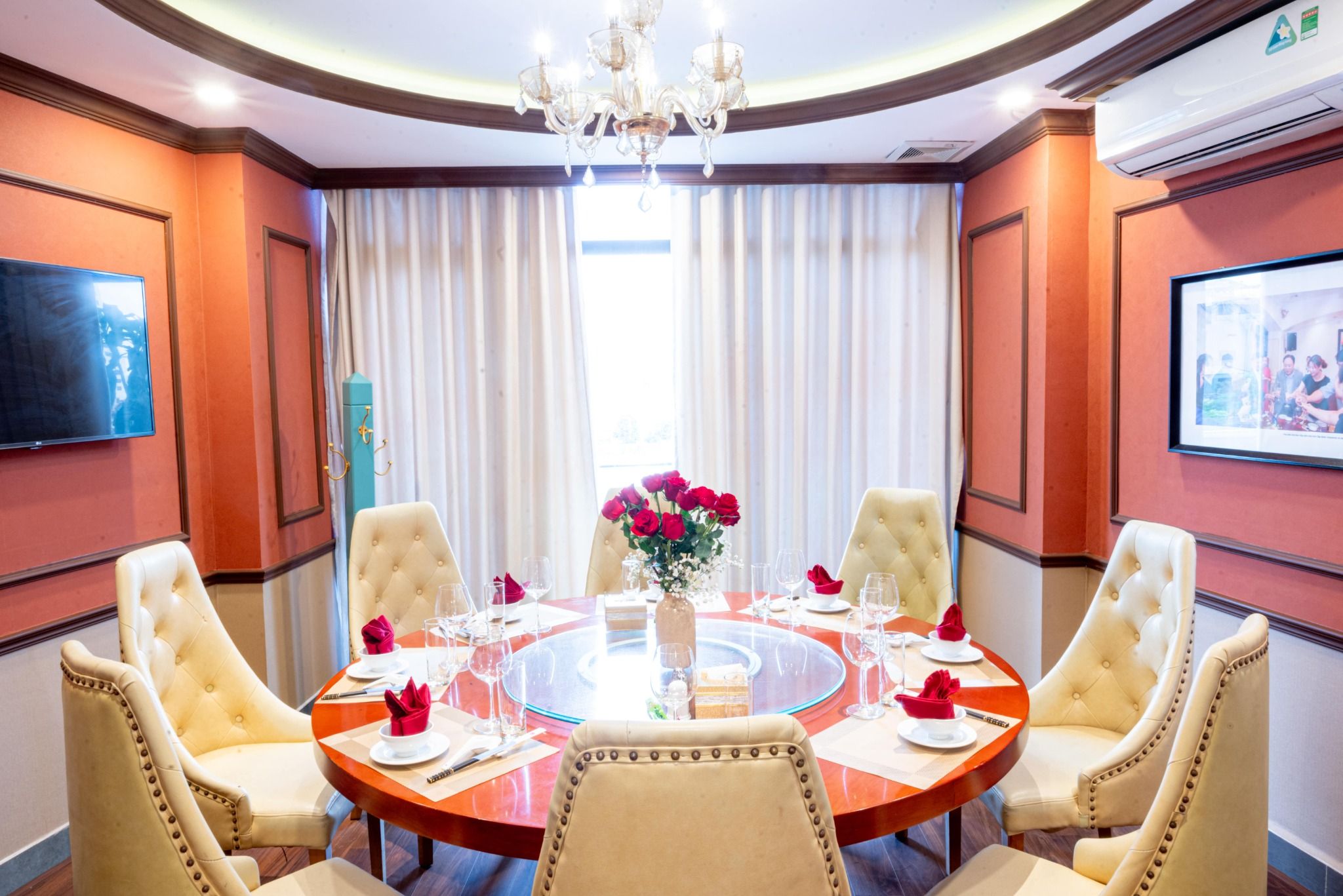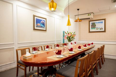 - Nhà hàng cung cấp phòng riêng có tính phí. Quý khách đặt phòng riêng/ VIP vui lòng yêu cầu trước, phí: 5%/ Tổng hóa đơn. Quý khách vui lòng trao đổi với nhân viên tại Nhà hàng để được hỗ trợ.