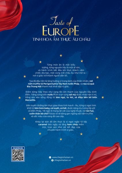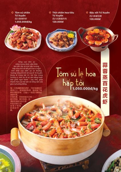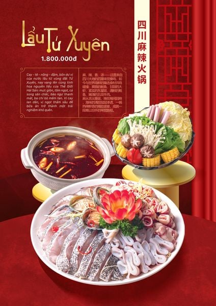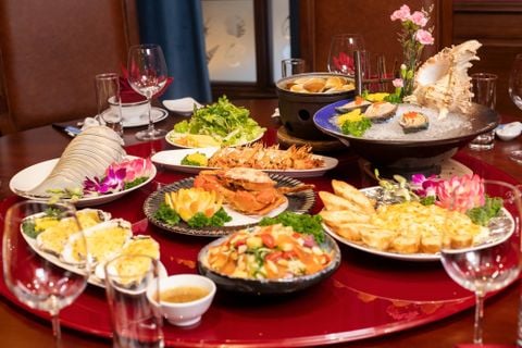 Thực đơn tại Thế Giới Hải Sản Trần Hưng Đạo mang đậm dấu ấn thương hiệu với những món đặc sắc như “Lộc biển phát tài” (Tôm hùm bông bỏ lò phô mai), “Thuận buồm xuôi gió” (Cá bơn vàng sashimi Hàn Quốc), “Báu vật đại dương” (Cua Kingcrab hấp rượu vang Pháp), hay Lẩu thuyền chài mang hương vị biển truyền thống. Thực khách còn có thể khám phá menu hải sản thế giới đa dạng như: Taste of China (Ốc hương xốt Tứ Xuyên, Bào ngư hấp nấm Vân Nam), Taste of Euro (Set Steak phố cảng Liverpool, Lời chào từ La Rochelle, Bí mật Sicilia), Taste of Europe (Bản sonate mùa đông nước Pháp – cá tuyết xốt nấm, Điệu Valse đại dương – mì Ý thịt ghẹ, Báu vật biển khơi từ Brittany – Tôm hùm bông xốt Tastate). Mỗi món ăn không chỉ được chăm chút về hương vị mà còn là hành trình khám phá ẩm thực biển cả từ khắp thế giới.