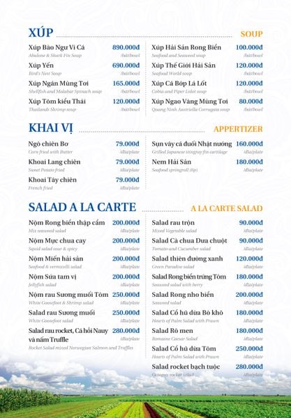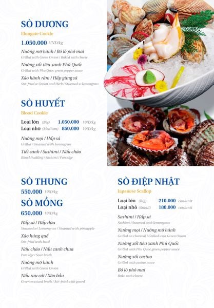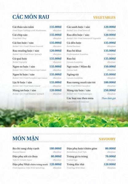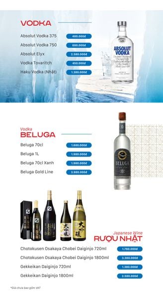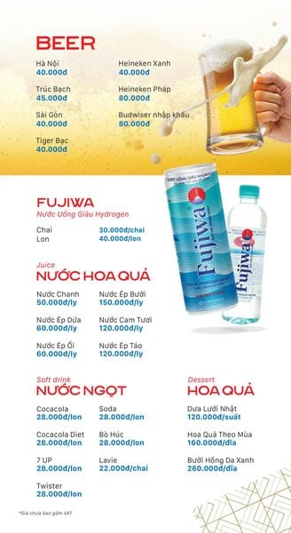 - Giá menu chưa bao gồm 8% VAT. Nhà hàng luôn thu 8% VAT và chỉ xuất hóa đơn trong ngày.