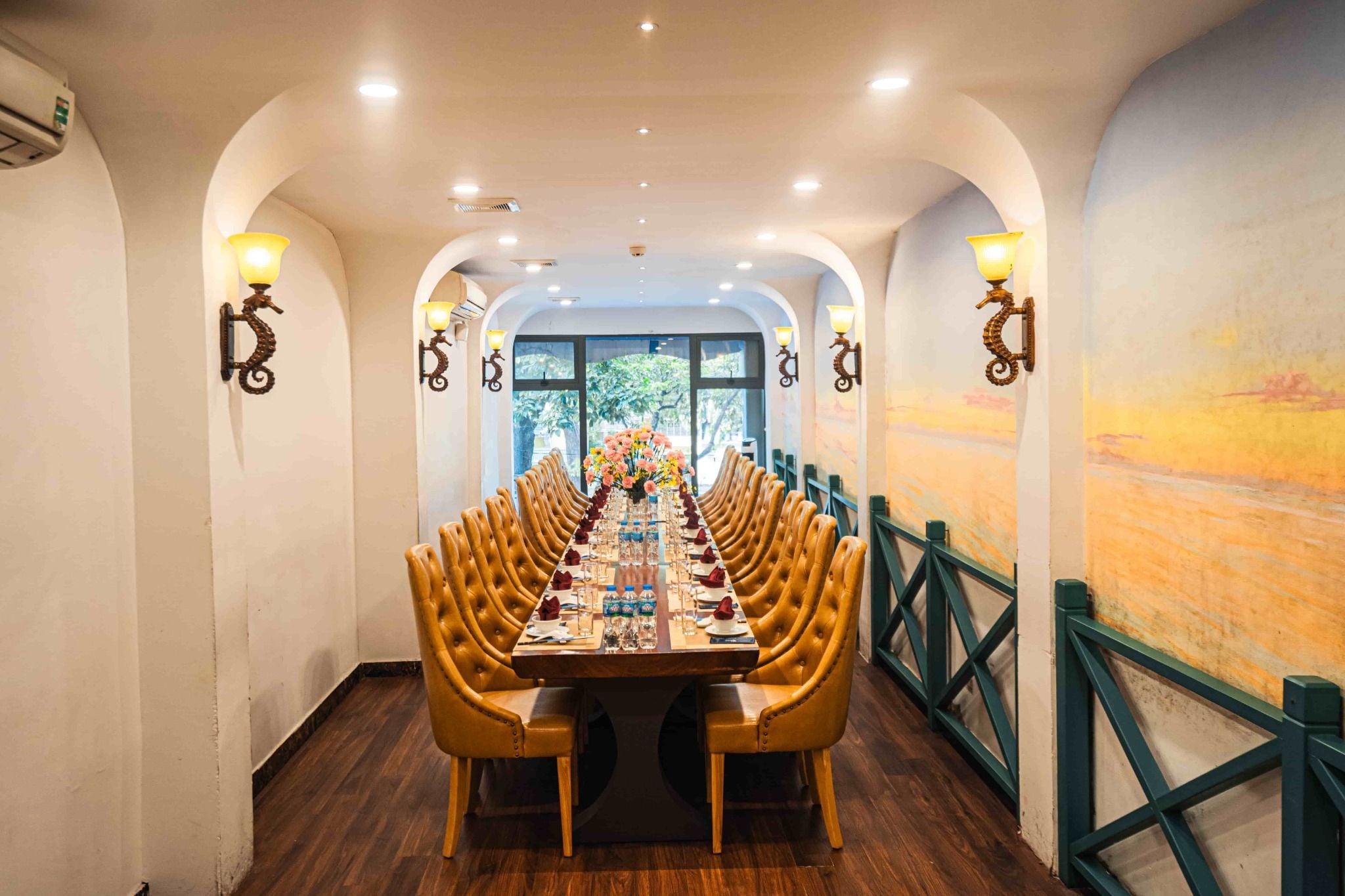 Không gian của Nhà hàng Thế Giới Hải Sản - 75A Trần Hưng Đạo có sức chứa lên đến 200 khách, hoàn toàn phù hợp cho các cơ quan, doanh nghiệp hay nhóm bạn cùng niềm đam mê hải sản chọn là nơi tổ chức tiệc, họp lớp, gặp mặt. Không gian Nhà hàng rộng rãi, thoáng mát giống như một mô hình thu nhỏ của thế giới biển cả sẽ giúp bạn gắn kết những cuộc liên hoan, gặp gỡ, hẹn hò.