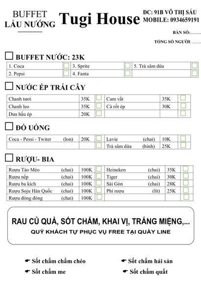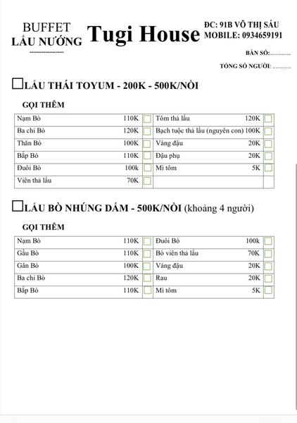 Nhà hàng Tugi House - Số 91B Võ Thị Sáu, P. Thanh Nhàn, Q. Hai Bà Trưng, Hà Nội - Hương vị tuyệt hảo của buffet lẩu nướng phong cách Hàn Quốc.