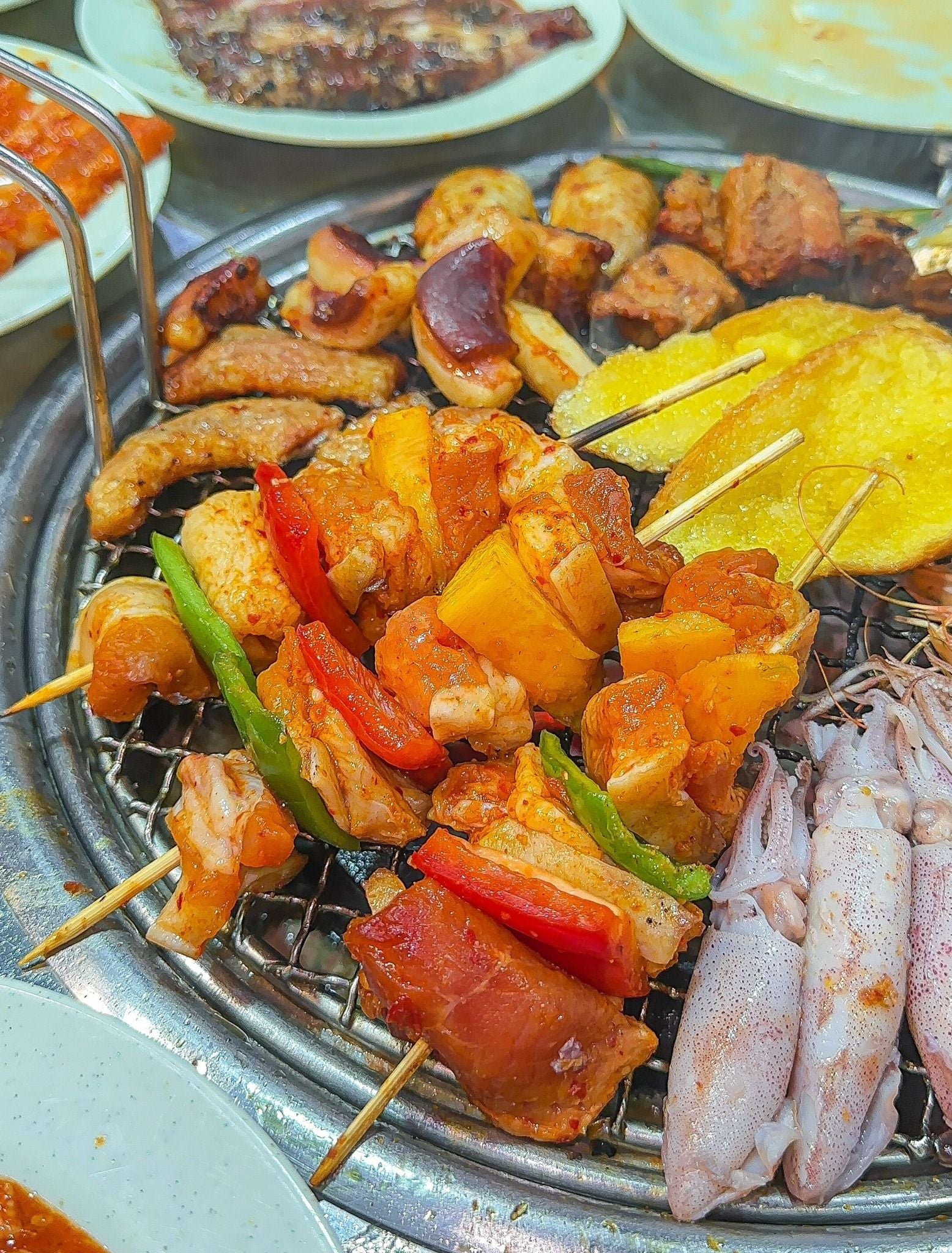 Đến với Tugi House, thực khách chắc hẳn sẽ không khỏi choáng ngợp trước buffet lẩu nướng đa dạng hơn 50 món nướng, khiến bạn trải nghiệm "mukbang" bữa tiệc lẩu nướng như phim Hàn, có thể kể đến như Bò tảng nguyên vị, Bò tảng sốt tiêu đen, Nầm heo nướng, Sườn heo sốt BBQ, Bạch tuộc nướng nguyên con,... Sau chầu nướng no nê, nhà hàng còn có vô vàn lựa chọn buffet lẩu không kém phần hấp dẫn như Lẩu Thái Tomyum, Lẩu Tứ Xuyên, Lẩu cà chua,... đảm bảo ăn một lần là nhớ mãi. Đặc biệt, với những bữa tiệc nướng cộp mác xứ củ sâm, những món ăn kèm panchan là không thể thiếu, khiến hương vị món nướng trở nên lôi cuốn hơn bao giờ hết. Vị ngọt thơm béo đặc trưng của thịt nướng xì xèo trên bếp than, hòa quyện với chút giòn giòn của rau sống, chua dịu nhẹ của củ cải muối, chút cay tê của nước sốt, quả thật là một sự kết hợp ẩm thực tuyệt hảo.