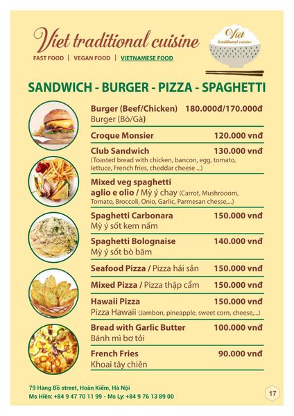Menu chưa bao gồm VAT, Nhà hàng luôn thu hộ thuế VAT. Mức phí VAT là theo quy định.