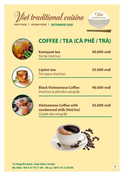 Tại Viet Traditional Cuisine, chất lượng dịch vụ luôn là ưu tiên hàng đầu, cam kết mang đến sự hài lòng tuyệt đối cho mọi thực khách. Đội ngũ nhân viên thân thiện, nhiệt tình, chuyên nghiệp và am hiểu về ẩm thực sẽ luôn sẵn sàng tư vấn, giúp bạn lựa chọn những món ăn phù hợp với khẩu vị và phục vụ chu đáo, nhanh chóng. Với mức giá khoảng 200.000 VNĐ - 300.000 VNĐ/người, nhà hàng mang đến trải nghiệm ẩm thực chất lượng cao, xứng đáng với sự đa dạng của thực đơn, hương vị món ăn chuẩn mực và không gian ấm cúng. Đây là một mức giá hợp lý cho một nhà hàng tọa lạc tại khu vực Phố Cổ, lý tưởng cho những bữa ăn gia đình, tụ họp bạn bè hoặc khi bạn muốn khám phá và thưởng thức trọn vẹn tinh hoa ẩm thực truyền thống Việt Nam.